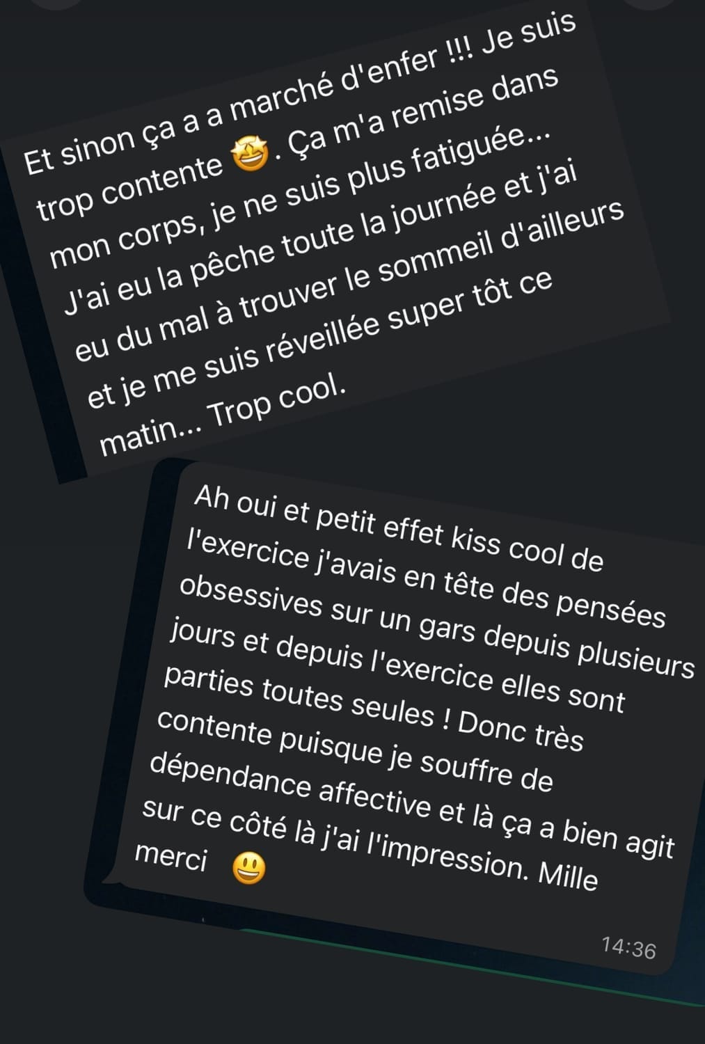 🔹 Si tu fais les exercices et suis le programme, ton corps enclenche son autoguérison et les changements deviennent visibles, ressentis et vécus.