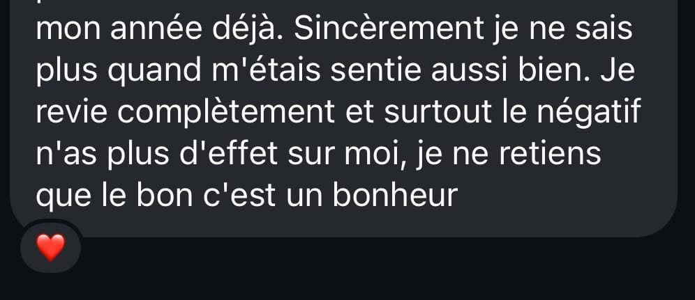 Chaque message que je reçois est une preuve que l’on peut transformer sa vie. Qu’on peut se libérer, avancer, guérir, s’élever. Ces mots sont les vôtres. Ils vibrent fort. Et je les partage ici avec gratitude. 💫
